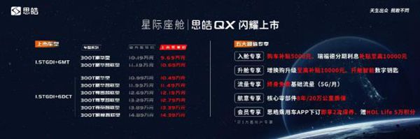 7月25日,以“從皓奇心到皓奇星”為主題的思皓QX上市發(fā)布會(huì)—臨沂站隆重舉行。作為巨資打造的MIS皓學(xué)架構(gòu)的首款車型,思皓QX正式上市,共8款車型,價(jià)格9.69萬-14.39萬元。