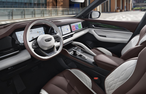 內飾方面,吉利星越L同樣采用了全新的布局,中控區(qū)域采用液晶儀表盤、中控屏以及副駕駛屏組成的三聯(lián)屏設計,三輻式多功能平底方向盤和飛機樣式的擋把則延續(xù)了家族式設計。