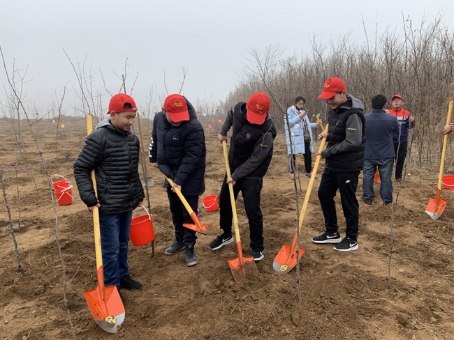 3月10日早上,2018級4班的同學(xué)們懷揣急切的心情,早早來到九中門口集合。在家委會的帶領(lǐng)下,由熱心的七位家長自駕私家車載著同學(xué)向河?xùn)|龍園出發(fā)了。一到目的地,同學(xué)們興奮不已,都飛快地下車,爭先恐后地領(lǐng)樹苗、鐵掀,水桶,奔向了植樹地點。有的挖坑、有的栽樹、有的抬水、有的澆水,同學(xué)們忙的不亦樂乎。雖然是乍暖還寒,可是同學(xué)、家長們干的熱火朝天,一會兒的功夫,一片海棠林就建起來了, 同學(xué)們歡呼雀躍,滿意地欣賞著自己的勞動成果。